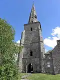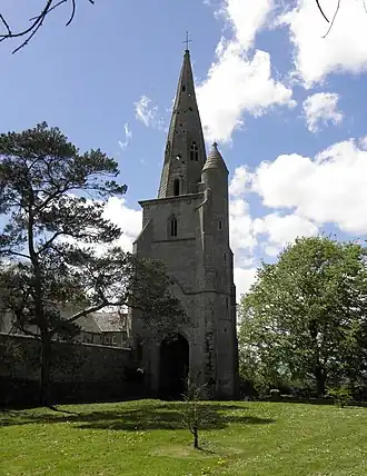 De la chapelle datant de 1474, détruite par les Anglais au XVIe siècle, n'est plus conservé que le clocher, tour carrée flanquée d'un escalier et surmontée d'une flèche octogonale en pierre. Le passage du carré à l'octogone est obtenu par quatre encorbellements simples par superposition d'assises dont la face présente un triangle[1].