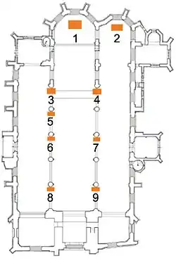 (1) Maître-autel- (2) Autel des sept douleurs de Marie