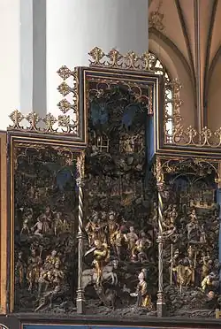 - Maître-autel : sculptures de Maître Arnt et de ses successeurs Jan van Halderen et Ludwig Juppe, tableaux de Jan Joest et de ses élèves.