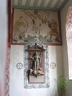 - Les fonts baptismaux datent du XVe siècle. Ils ont été enlevés de l'église lors de l'introduction de la Réforme pour être exposés dans le jardin du presbytère. Les fonts baptismaux ont ensuite été réinstallés dans l'église au cours du XIXe siècle.