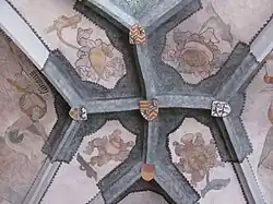 Les peintures murales datent de différentes époques. La plus ancienne représente la mort de Marie et le Jugement dernier. Elle se trouve sur le mur septentrional du chœur. D'après ses caractéristiques stylistiques, elle date vraisemblablement du dernier quart du XIVe siècle.