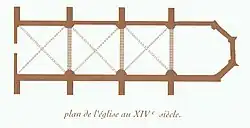 L'église Saint-Nicolas n'a cessé de s'agrandir pendant quatre siècles. En 1398 l'église avait une nef unique à trois travées, voûtée d'ogives, étayée par de puissants contreforts extérieurs, un petit chœur polygonal et un sol en terre battue.