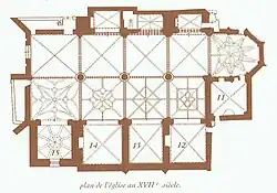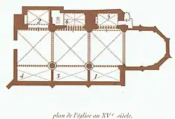 Les ogives de la nef principale sont reconstruites entre 1671 et 1685, comme l'attestent les deux chronogrammes inscrits sur les clés de voûtes des deux premières travées.