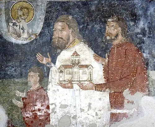 Une charte de la princesse Milica, la femme de Lazar Hrebeljanović, datée de 1395, en fait don au monastère Saint-Pantaléon du mont Athos, ce qui signifie que l'église était déjà construite et peinte avant cette date[1],[2].