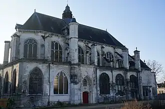 C'est une chapelle qui dépendait de la paroisse de St-Jean-au-Marché en 1189 et ne devint indépendante qu'en 1722. L'église fut rebâtie en pierre après l'incendie de 1524 qui détruisit une grande partie de la ville. En 1526, le conseil de fabrique décida l'agrandissement de l'édifice. Le maître maçon Gérard Faulchot proposa un plan qui fut mis en réalisation en avril ; un long chantier acheva les parties basses du chœur en 1535 et la partie nord de l'église. Son fils Jean édifia les chapelles de la nef puis le côté sud de 1551 à 1553. Une nouvelle campagne de 1553 à 1566 acheva le côté nord. Rémy Mauvoisin finit la couverture de l'édifice entre 1582 et 1608 en laissant la date de 1594 entre la deuxième et la troisième travée. L'église se trouvait adjacente à la muraille.
