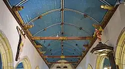 L'église a été construite au centre d'un enclos qui comprenait un arc triomphal, par la suite transformé en monument aux morts.