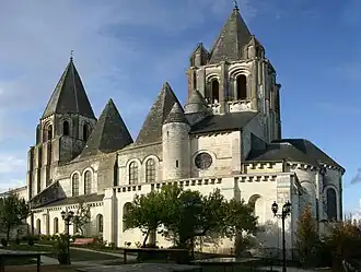 L'église Saint-Ours de Loches, prononcé [sɛ̃tuʁ], est une ancienne collégiale située à Loches (Indre-et-Loire), dont l'architecture est marquée par deux tourelles pyramidales à huit faces, les « dubes », élevées vers 1165, ainsi que par son portail polychrome sculpté de personnages et d’animaux tirés du bestiaire du Moyen Âge.