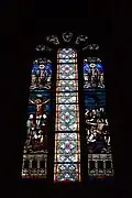 Les stations du chemin de croix se trouvent illustrés dans les vitraux des collatéraux.