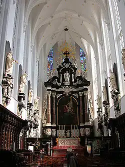 Les colonnes sont cylindriques et leur chapiteau décoré de feuilles de chou. Le mobilier et le décor intérieur sont de style baroque flamand. L'église abrite cinquante tableaux dont les plus connus sont Les quinze Mystères du rosaire réalisés par onze peintres différents vers 1617-1618.