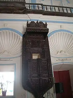 L’intérieur est l’un des plus raffinés que l’on trouve dans les églises portugaises en Inde: figures et volutes de stuc blanc et de bois sculpté. Les images et objets religieux - d’ivoire ou d’argent - ont cependant des tonalités qui établissent la forte influence d’artistes locaux. L’autel principal, surmonté de la statue de la Vierge Marie, est d’une seule pièce de bois teck de Birmanie. Au dessus de l’autel une voûte en semi-tonneau de couleur bleu et blanc est décorée de multiples peintures et statues.