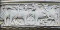 La connaissance éventuellement exposée dans le 3e bas-relief conduit au triomphe, au triomphe de l’homme sur l’animal. Le 8e bas-relief le mettrait en avant.