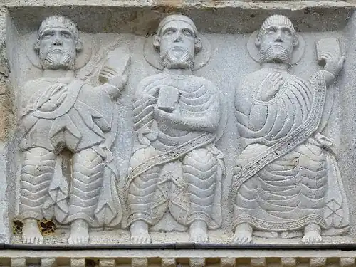 Ces bas-reliefs sont positionnés de droite à gauche suivant l’ordre dans lequel ils sont révélés sur l’abside de l’église de Saint-Paul.