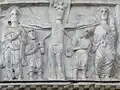 - N° 2 : Des hommes tiennent par les cheveux deux femmes placées aux angles de la corbeille.