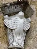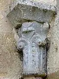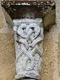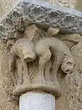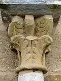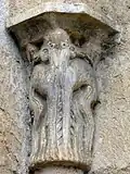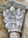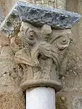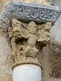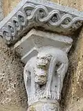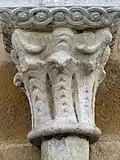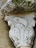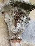 - N °18 : Un chapiteau assez médiocre inventé dans les années 1960 lors d'une restauration. L'original, retiré au siècle dernier, serait au musée des Beaux-Arts d’Agen. Il figure un homme et une femme enlacés[7]