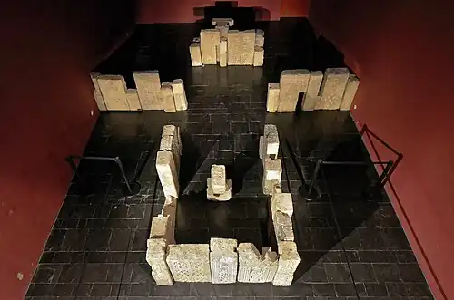 Les panneaux ont une hauteur de 1,09 à 1,10 m, une largeur de 50 à 74 cm et une épaisseur de 18 à 24 cm. La hauteur des piliers est de 1 m à 1,10 m.