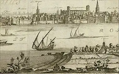 Abandonnée vers 1618, parce que les habitants la trouvaient trop éloignée « du village » [9] à la suite du déplacement du pont de bateaux plus en aval, l'église est alors connue sous le nom de « Saint-Pierre-le-Vieux »[10]. Elle est ensuite démolie en 1786[11],[12] et rasée en 1872 ; ses matériaux servent à la construction de l’enclos du cimetière qui marque son emplacement[13].