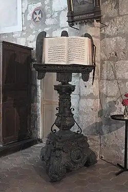 Dans le bas-côté gauche, se trouvait un panneau ovale représentant la danse ou adoration du Veau d'Or. Cette œuvre fut volée en décembre 2002.