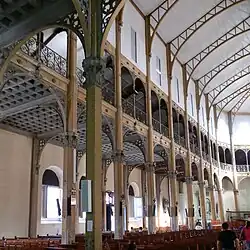 A la suite de la menace de l'effondrement des colonnes en bois de la nef, l'église est fermée en 1867. Charles Trouillé envisage de remplacer les colonnes et les murs supérieurs de la nef par une charpente en fer. La maison Joly d'Argenteuil obtient le marché mais la guerre de 1870 et la Commune de Paris, retarde la confection des structures. La construction est enfin achevée en 1873. Il s'agit d'une structure intégralement apparente. Les piliers de la nef sont en fonte et sont ornés de chapiteaux. Ils supportent l'ensemble de l'ossature. Celle-ci est indépendante de l'ancienne maçonnerie. Les colonnes de métal longent les murs latéraux. Les fermes cintrées de la toiture sont apparentes mais à l'origine la voûte de la nef centrale était couverte d'un décor en plâtre représentant des nervures de style néogothique[9].