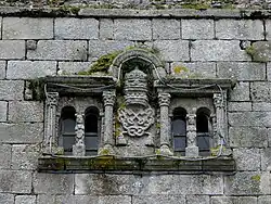 Sur la façade ouest est incrusté un petit édicule encadrant les armoiries papales. Il daterait du XVIIe siècle et proviendrait du château d'Averton[a 1].