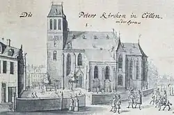 L'église romane est endommagée deux fois par le feu et est gravement touchée par l'effondrement du clocher. L'église comporteun maître-autel et plusieurs autels secondaires, qui sont entretenus par les citoyens de Cölln et le souverain et soutenus par des lettres d'indulgence. Ces lettres certifient à l'acquéreur respectif une indulgence, c'est-à-dire une remise des peines imposées qui doivent encore être purgées par le pécheur après son repentir, sa conversion et l'absolution ecclésiastique reçue en confession.