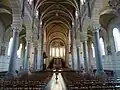 L'intérieur de l'église comporte une fresque, une chaire à prêcher, un orgue et plusieurs statues, comme celle de la Vierge[4].