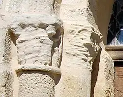 À l'intérieur de l'église, l'arc triomphal est orné de deux chapiteaux sculptés. Au nord, l'unique sujet figuré est le buste d'un homme, coiffé d'une toque cylindrique, qui se présente frontalement en position d'orant. Le chapiteau sud montre une plante stylisée, étirée au-dessus de grands feuillages.
