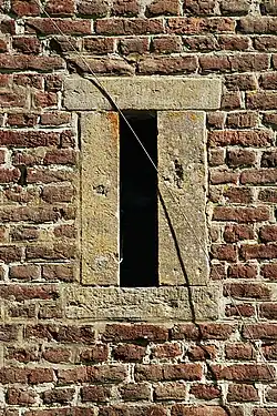 Le transept du XVIIe siècle[3], fortement altéré au sud, ne présente son aspect original qu'au niveau du croisillon nord, percé d'une élégante fenêtre dont les piédroits biseautés à triple harpe portent un arc à intrados surbaissé et extrados cintré. Le croisillon sud montre de lourdes traces de réfection : sa fenêtre a perdu son encadrement de pierre dans sa partie supérieure, l'arc étant remplacé par un simple arc surbaissé réalisé en briques.