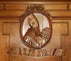 Les côtés du chœur sont couverts de lambris de la même époque que l'autel, ornés de médaillons ovales ornés de portraits de saints (comme le portrait de saint Ambroise).