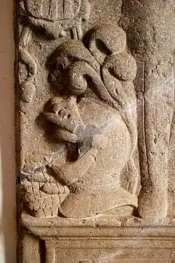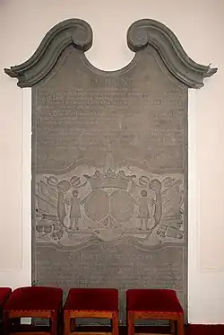 Sous le clocher, à droite de l'entrée, se dresse une pierre tombale de la Renaissance, daté de 1636[1].