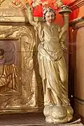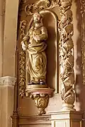 Les portails en bois sculptés dans la masse semblent curieux. La statue de Notre Dame a parcouru les paroisses de la région d'Aire et de Villeneuve de Marsan en en des processions mémorables. Elle a figuré à l'exposition d'Art sacré de Dax en 1955[1].