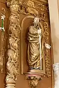 À l'entrée se trouve un porche en forme rectangulaire. L’église n'a qu'une nef avec deux chapelles latérales dédiées au Sacré-Cœur et à la Vierge Marie. Un grand retable en bois doré couvre tout le fond du sanctuaire. Il se compose d'une boiserie peinte aux ornements divers. De chaque côté se trouvent des statues qui produisent un certain effet : saint Pierre et saint Paul, la Vierge Marie et l'ange Gabriel. Quatre colonnes torses, autour desquelles s'enroulent des branches de vigne, complètent l'ensemble. Le retable date peut-être du XVIIe ou XVIIIe, la datation semble difficile.