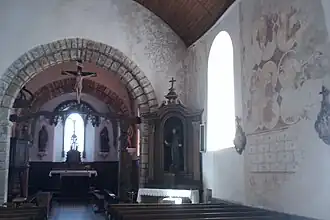 L'église du XIIe siècle, en partie romane, a conservé une partie de ses baies d'origines, son portail, les arcs-doubleaux qui supportent la tour. Les voûtes du chœur datent du XIVe siècle. La chapelle seigneuriale du XVe siècle a été transformée en sacristie[1]. L'édifice abrite de belles fresques murales du XIIIe au XVIe siècle mises au jour en 1984[2].