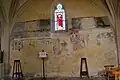 Le mur nord : La série de modillons continue sur le mur nord. Ils sont cachés sous les combles du bas-côté. Cette protection, depuis cinq siècles, a permis de conserver des traces de peinture polychrome datant de l'époque médiévale.