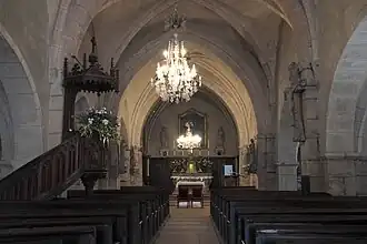 La nef centrale à trois travées est romane. Le chœur et la travée qui le précède sont gothiques ; cette travée faisait partie du chœur comme le montre la trace de l'emplacement d'une poutre de gloire.