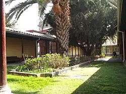 La tour est en briques jusqu'à la corniche supérieure, complétée par un grand lanternon de bois doré et de fer estampé, surmonté d'une statue de l'archange saint Raphaël[2] Le cloître est de style colonial, avec divers espaces formant plusieurs patios. Il est formé de murs d'adobes avec des piliers élancés, et une couverture de tuiles[2].