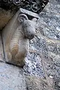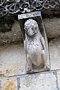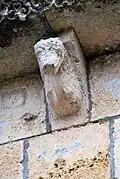 Les modillons du chevet : Les modillons du gouttereau nord portent l'empreinte du style gothique selon l'étude de Drouyn[4]. On trouve huit modillons : trois têtes couronnées, trois têtes sans attribut et deux animaux : un félin et un agneau crucifère.