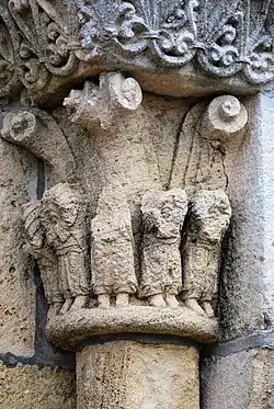 Sur les pieds-droits au nord du portail, les chapiteaux mettent en scène le banquet d'Hérode, la danse de Salomé et la décollation de saint Jean-Baptiste.