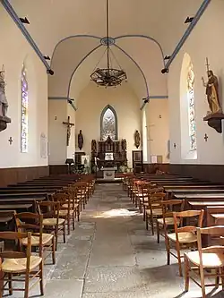 Elle a été édifiée entre 1857 et 1862 dans un champ a proximité de la mairie. L'église datant du XIVe – XVe siècle[1] était à l'emplacement de la place du bourg entourée du cimetière (voir vieux cadastre). Ses vitraux ont fait l'objet en 2015-2016 d'un projet de restauration par la Fondation du Patrimoine[2],[3].