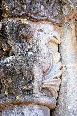 Il représente deux lions et est sans rapport avec les leçons de moralité des autres chapiteaux du portail.