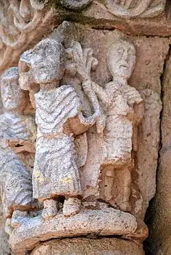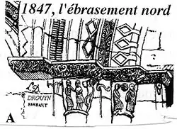 Le chapiteau et sa colonnette ne sont pas romans. Ils n'existaient pas en 1847 (d'après un dessin[4] de Léo Drouyn). Cette contrefaçon néo-romane date de la restauration du XIXe siècle.