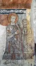 L'intérieur abrite les peintures romanes les plus anciennes de la principauté d'Andorre[8]. Celles-ci, découvertes en 1976, sont contemporaines de la construction de l'église[10] et diffèrent nettement de par leur style des autres peintures du pays[10],[9]. Elles apparaissent en effet plus primitives, marquées par l'art préroman, et sont à rapprocher de celles retrouvées dans l'église de Marmellar (El Montmell)[10]. Les peintures représentent notamment l'Agnus Dei (au sommet de l'arc donnant accès à l'abside où sont situées les peintures)[10], des figures angéliques[10],[9] (l'une d'elles apparaissant barbue pouvant correspondre en réalité à Jean le Baptiste[10]) et des éléments symboliques liés au bien et au mal[9]. Dans cette dernière catégorie on retrouve un aigle (pouvant correspondre à l'aigle de Jean, à une allégorie du Christ triomphant ou encore à l'aigle de l'Apocalypse) ainsi qu'une représentation de Saint Georges tuant le dragon[10]. Cette dernière constitue de plus la plus ancienne trace de culte voué à Saint Georges de toute la Catalogne[10].