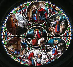 Joseph Villiet a dû réaliser les rosaces du transept. Henri Feur a exécuté les vitraux de la chapelle Saint-Alpinien en 1895 et ceux de la chapelle Sainte-Anne (aujourd'hui chapelle du Sacré-Cœur). Louis Victor Gesta a fourni les deux vitraux de la chapelle Saint-Joseph. La chapelle de la Vierge a reçu un vitrail représentant le dogme de l'Immaculée Conception, en 1854, par le pape Pie IX[9].
