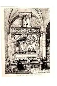 - ↑ Les fenêtres et les voûtes des deux travées sont gothiques, mais l’autel et les arcades en plein cintre qui ouvrent la chapelle vers la nef sont de style Renaissance. De même, les chapiteaux sont indifféremment de l’antique ange chrétien et de l’amour joufflu dont la mode débute alors