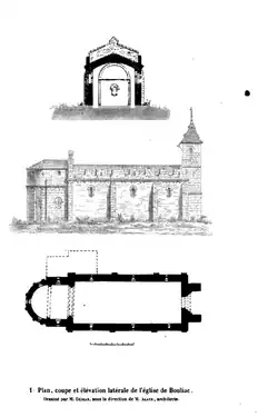 - ↑ Ce texte est basé en partie sur une affiche d'information à l'entrée de l'église, intitulée « Église Saint-Siméon Stylite XIIe siècle », réalisée à l'initiative de J-P Favroul, maire de Bouliac en 1995.
