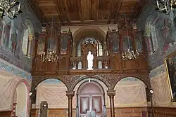 Construit sur une tribune à l'entrée de la nef, l'orgue a la particularité d'être scindé en deux parties distinctes, attachées l'une à l'autre par un clavier. Il comprend au total dix jeux répartis en deux claviers et un pédalier.