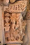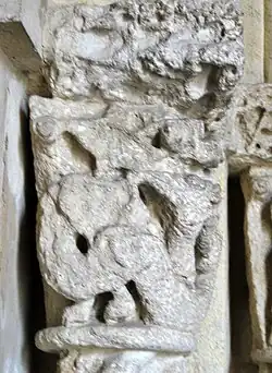 Sur la corbeille du chapiteau sud, deux serpents, enlacés par le cou de façon à former un nœud, se mordent la queue.