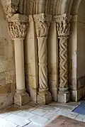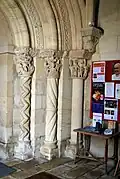Les corbeilles des colonnettes de la première baie ont un décor uniquement végétal.