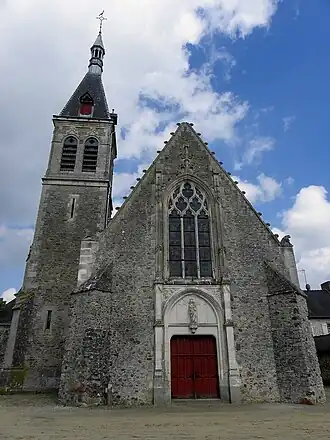 Après avoir vu son chœur agrandi et éclairé par une grande baie axiale gothique bigéminée surmontée d'un quadrilobe au XIIIe siècle ou XIVe siècle, c'est entre et que René de la Chapelle, grande famille seigneuriale du Bas Maine, son fils Olivier de la Chapelle avec son épouse Arthuse de Melun agrandissent et embellissent l'église. D'abord une chapelle à vocation funéraire, chapelle dite de Montfroncher est construite au nord s'ouvrant sur la nef par un arc en anse de panier et sur le chœur par deux autres arcs ouvragés. Est accolée à celle-ci à l'est contre le mur nord du chœur une petite chapelle basse dite du sépulcre, s'ouvrant par une petite ouverture en plein cintre sur la chapelle Montfroncher, destinée à accueillir le groupe sculpté de la mise au tombeau. Au sud du chœur, une chapelle seigneuriale, voûtée de pierre, moins longue et moins profonde que la chapelle nord, permet d'assister aux offices sans contact avec les occupants de la nef.