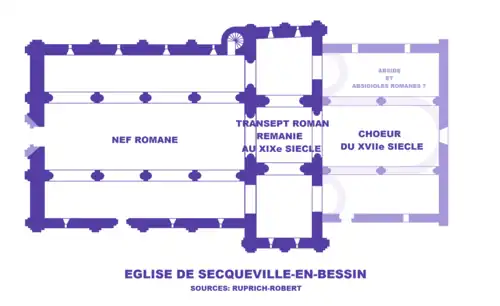 L'église de Secqueville-en-Bessin est un monument exceptionnel dans une commune rurale. Les solutions architecturales sont celles de grands sanctuaires, abbatiales et cathédrales. Cette église a quelque chose d'un exercice de virtuosité et a peut-être une position d'avant-garde[2].