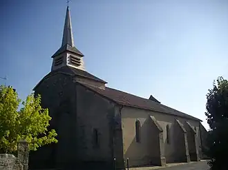 La nef avec son chevet droit formait l'église primitive construite au 13e siècle[1] et fortifiée. On peut encore apercevoir entre le mur supportant le fronton et les contreforts les ouvertures d'un ancien chemin de ronde et des restes de machicoulis sont visibles sur la partie supérieure du chevet avec une échauguette à l'angle nord-est[1]. Au 15e et 16e siècles, trois chapelles ont été ajoutées à l'église initiale[1]. Le chevet plat se termine par un fronton surélevé, couronné d'une boule[1]. Le clocher primitif devait se dresser sur la troisième travée alors que le clocher actuel, en charpente, se dresse sur la première travée[1].